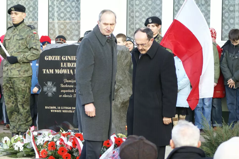W sposób szczególny Elżbiecie Urban, Dyrektorowi SP w Bachowie, Radzie i Wójtowi Gminy Krzywcza, Związkowi Sybiraków o. Przemyskiemu, Bachowskim Sybirakom, Gronu Nauczycielskiemu Szkoły, Radzie Rodziców Szkoły, uczniom Szkoły, Sołtysowi wsi Bachów wraz z Radą Sołecką, Ochotniczej Straży Pożarnej w Bachowie, księżom: ks. Kazimierzowi Bugielowi, ks. Stanisławowi Siuzdakowi, ks. Tadeuszowi Paterowi, dodać jeszcze tego młodego, Agacie Wiśniowskiej, Kierownikowi Gminnego Centrum Kultury w Babicach, członkom Związku Strzeleckiego „Strzelec” z Przemyśla za zaciągnięcie warty honorowej, Chórowi „Gloria” z Babic, Teresie Buś za zorganizowanie wspaniałego posiłku, przedstawicielom rzeszowskiego Instytutu Pamięci Narodowej: Arturowi Brożyniakowi i Tomaszowi Berezie, wszystkim znamienitym gościom którzy zaszczycili nas swoją obecnością i wspieraniem lokalnych inicjatyw: parlamentarzystom, przedstawicielom władz wojewódzkich, powiatowych, miejskich i gminnych, to dla organizatorów było bardzo ważne wszystkim raz jeszcze