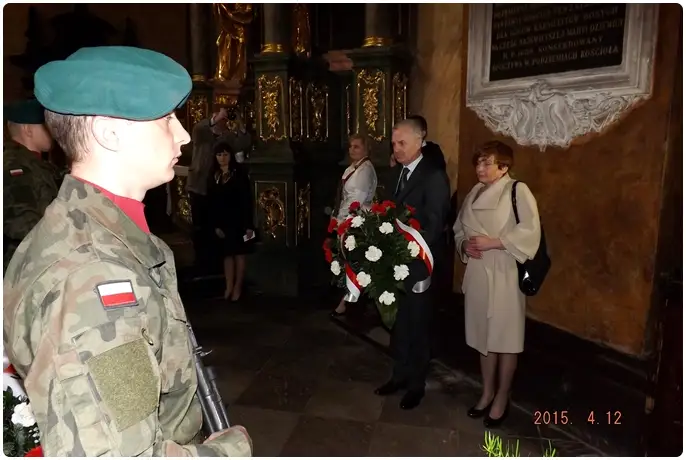 Po Mszy św. przybyłe delegacje złożyły wieńce pod tablicą pamięci Ofiar Zbrodni Katyńskiej „Katyń ocalić od zapomnienia”