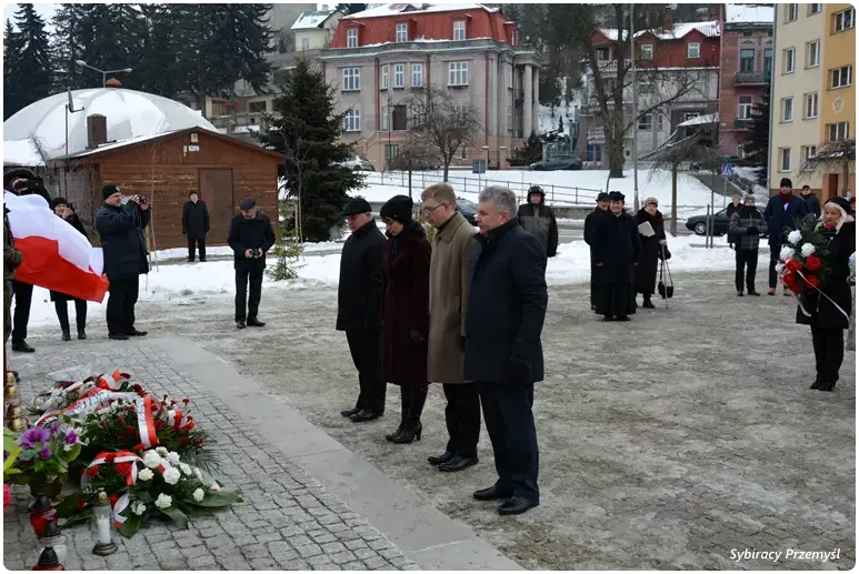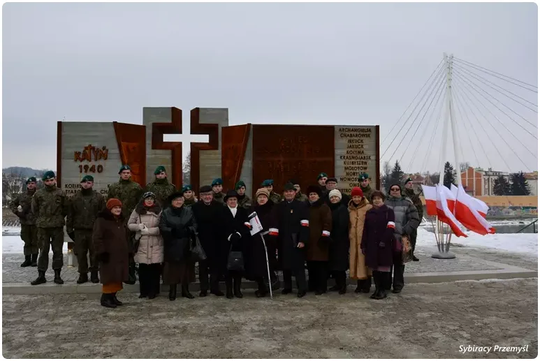 Po tej części uroczystości zgromadzeni udali się przed pomnik upamiętniający „Zesłańców Sybiru i Ofiar Katynia”. Przy tym ważnym dla przemyskich Sybiraków, ofiar II wojny światowej symbolu, przybyłych mieszkańców miasta i powiatu, Sybiraków, Władze Miasta i Powiatu Przemyskiego powitała Pani Stanisława Żak – Członek Zarządu Oddziału Związku Sybiraków w Przemyślu. Odegrano Hymn Sybiraków a Pan Tadeusz Szczerbaty aktor teatru „Fredreum” odczytał wiersz „Modlitwa Sybiraków do Matki Boskiej Królowej Korony Polskiej”.
