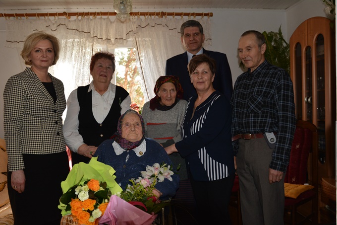 Przedstawiciele naszego oddziału Joanna Preiss – Prezes Zarządu, Jan Filozof – Członek Zarządu, Marian Boczar – Sekretarz Oddziału w dniu 7 marca mieli zaszczyt odwiedzić Szanowną Jubilatkę i Jej rodzinę wraz z Burmistrzem Miasta Dynowa Zygmuntem Frańczak i Kierownikiem Urzędu Stanu Cywilnego w Dynowie Anna Nowicką-Hardulak.