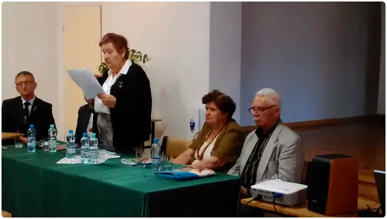 Zgromadzeni obejrzeli film „Na nieludzką ziemię”, którego pomysłodawcą był Pan Mirosław Majkowski – Prezes Przemyskiego Stowarzyszenia Rekonstrukcji Historycznych X D.O.K. Film powstał na bazie wspomnień Sybiraków z przemyskiego Oddziału Związku Sybiraków.