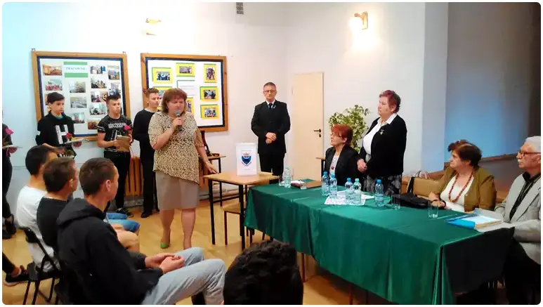 Przybyłych na spotkanie Panią Joanne Preiss – Prezes Zarządu Oddziału Związku Sybiraków w Przemyślu, Panią Marię Wielgosz – Członka Zarządu Oddziału, Panią Teresę Paryna – przemyską poetkę, Pana Bronisława Klepackiego – Członka Zarządu Oddziału i Pana Mariana Boczara – Sekretarza Zarządu Oddziału powitała Dyrektor Szkoły Pani Jolanta Borowiec.