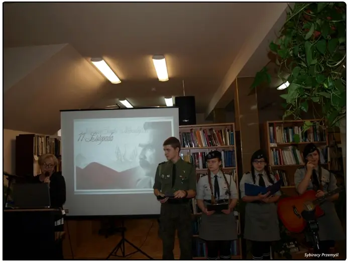 Spotkanie rozpoczęło się występem młodzieży ze Związku Harcerstwa Polskiego – Hufiec Ziemi Przemyskiej im. Orląt Przemyskich .Harcerze  wykonali krótki program artystyczny składający się z wierszy i piosenek patriotycznych o tematyce niepodległościowej. Prelekcję pt.: „Współtwórcy niepodległości Polski – Piłsudski, Dmowski, Paderewski, Haller” wygłosił Zenon Fajger – główny specjalista Oddziałowego Biura Edukacji Narodowej IPN w Rzeszowie. Słowo mówione zostało zilustrowane ciekawymi przezroczami z epoki  powstania Niepodległej.