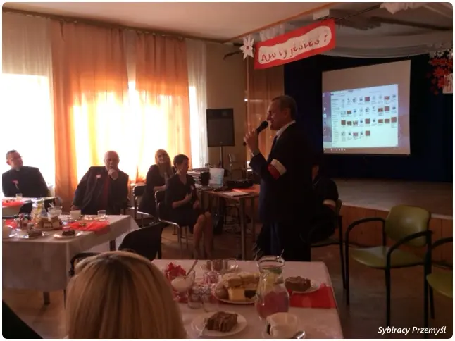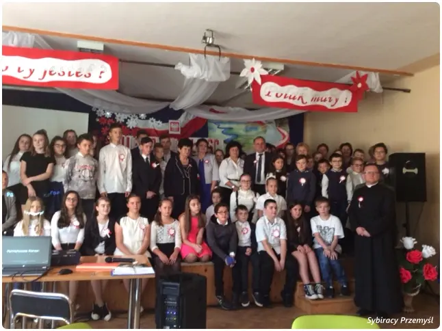 Następnie odbyła się „Żywa Lekcja Historii”, którą przygotowali przedstawiciele przemyskiego Oddziału Związku Sybiraków Pani Stanisława Żak – Prezes, Pan Andrzej Stawarz – Wiceprezes i Pani Maria Wielgosz – członek Zarządu. Uczniowie obejrzeli film „Losy zesłańców Sybiru”, który został uzupełniony wspomnieniami z pobytu na deportacji. Pani Maria Wielgosz zaprezentowała wiersze inspirowane przeżyciami na Syberii poświęcone pamięci zesłańców. Na zakończenie wspólnie śpiewano pieśni wojskowe i patriotyczne.