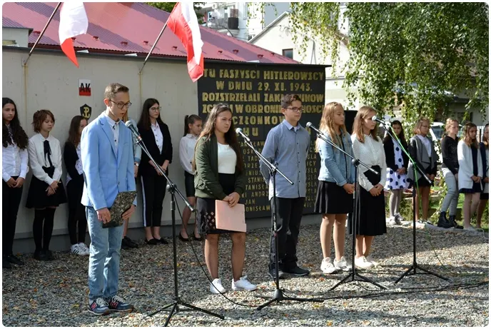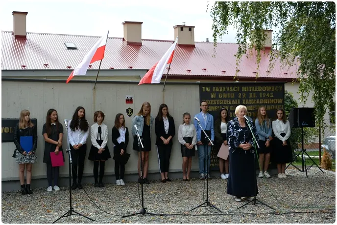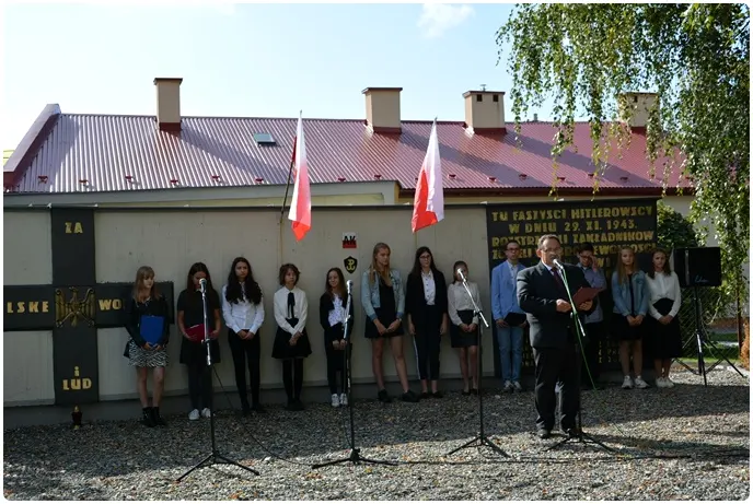Uczniowie w montażu słowno-muzycznym przypomnieli ważne wydarzenia z okresu II wojny światowej. Po programie głos zabrała Pani Bronisława Bełtkiewicz, która reprezentuje poszkodowanych przez III Rzeszę niemiecką w Okręgu podkarpackim.
