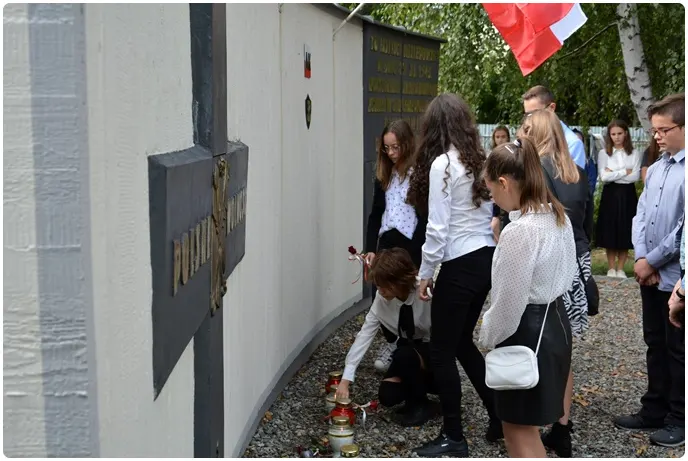 Zaproszone osoby z rąk uczennic otrzymały symboliczne różyczki w podzięce za przybycie, które następnie zostały złożone pod ścianą straceń wraz zapalonymi zniczami.