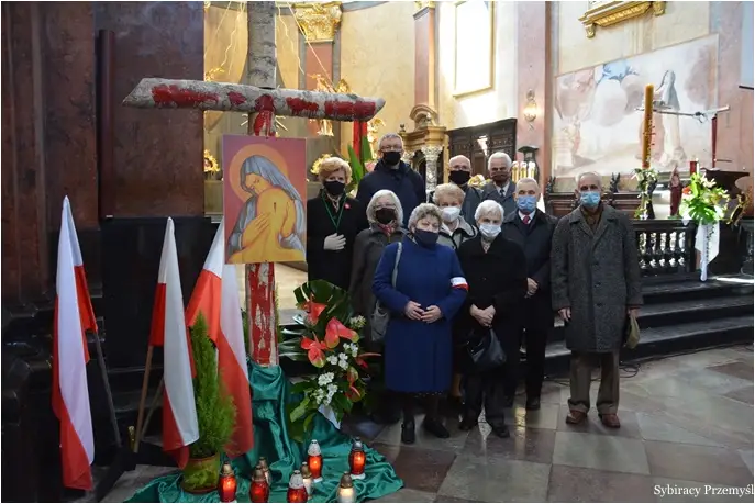 Zgromadzeni przy pomniku „Zesłańcom Sybiru i Ofiarom Katynia”. Od lewej: Janusz Zapotocki – Radny Rady Miejskiej Przemyśla, Maciej Kamiński – Przewodniczący Rady Miejskiej Przemyśla, Wojciech Bakun – Prezydent Miasta Przemyśla, Mieczysław Tłuczek – Sybirak, Stanisława Żak – Prezes Zarządu Oddziału Związku Sybiraków w Przemyślu, Irena Kawka – Rodziny Katyńskie, Jadwiga Maszczak – skarbnik Oddziału, Maria Rydzik, Roman Rydzik – Sybirak.