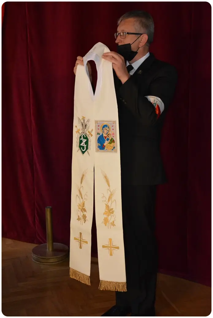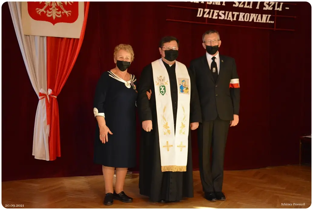 Na scenę został zaproszony ks. prałat Jan Mazurek pełniący obowiązki duszpasterza przemyskiego Oddziału Związku Sybiraków prawie 10 lat. Duszpasterz otrzymał od wdzięcznych za posługę Sybiraków stułę kapłańską z wyhaftowanym godłem Związku Sybiraków i wizerunkiem Matki Bożej Nieustającej Pomocy. Z nieukrywanym zaskoczeniem i wzruszeniem przyjmował dar przemyskich Sybiraków.
