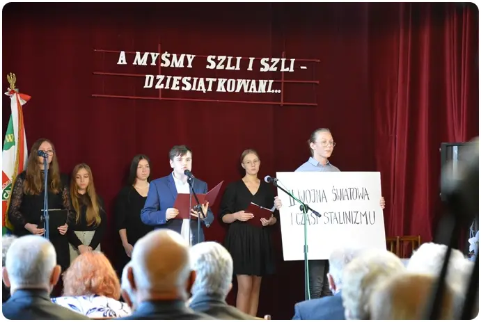 Spotkanie okolicznościowe w hołdzie żyjącym Zesłańcom Sybiru występem uświetnili uczniowie Szkoły Podstawowej Nr 15 im. Adama Mickiewicza w Przemyślu. Od wielu lat Dyrekcja Szkoły i Nauczyciele współpracują z przemyskim Oddziałem Związku Sybiraków czynnie angażując się w projekty skierowane do młodzieży. Do występu uczniów przygotowali nauczyciele: Pani Monika Góruk, Pan Marcin Duma i Pan Łukasz Cebeńko.