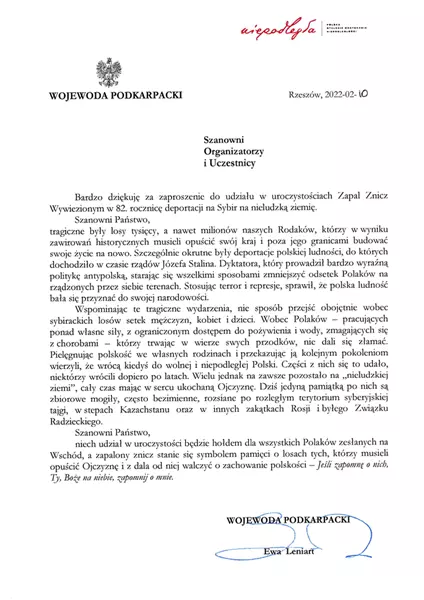 List od Pani Wojewody Post Views: 343 12 lutego 20222 PISMA Nawigacja wpisu Poprzedni Poprzedni wpis: Sybiracy u Żołnierzy 1 batalionu czołgów w ŻurawicyNastępny Następny wpis: List od Prezydenta Miasta Przemyśla Podobne wpisy List Dyrektor Pedagogicznej Biblioteki Wojewódzkiej 3 września 2022 List od Prezydenta Miasta Przemyśla 12 lutego 2022 List Szefa Urzędu do spraw Kombatantów i Osób Represjonowanych 27 grudnia 2020 List Marszałka Sejmu RP z okazji Dnia Sybiraka 17.09.2017 r. 17 września 2017 List Posła na Sejm RP Andrzeja Matusiewicza z okazji Dnia Sybiraka 17 września 2017 List Przewodniczącej Rady Miejskiej w Przemyślu 17 lutego 2017