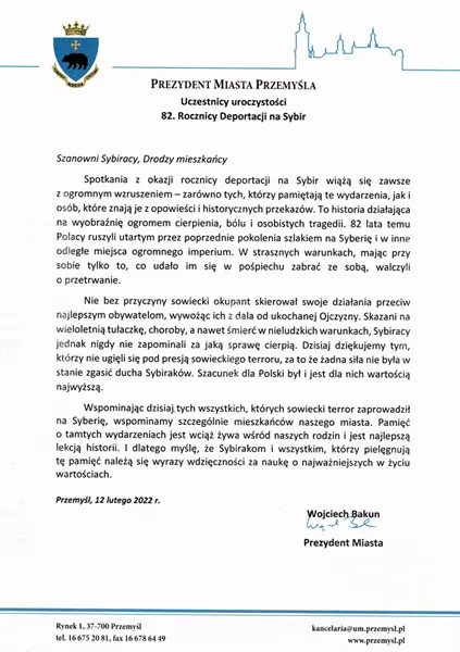 List od Prezydenta Miasta Przemyśla Post Views: 405 12 lutego 20222 PISMA Nawigacja wpisu Poprzedni Poprzedni wpis: List od Pani WojewodyNastępny Następny wpis: 82. rocznica deportacji na Sybir w Przemyślu – Gazeta Nowiny Podobne wpisy List Dyrektor Pedagogicznej Biblioteki Wojewódzkiej 3 września 2022 List od Pani Wojewody 12 lutego 2022 List Szefa Urzędu do spraw Kombatantów i Osób Represjonowanych 27 grudnia 2020 List Marszałka Sejmu RP z okazji Dnia Sybiraka 17.09.2017 r. 17 września 2017 List Posła na Sejm RP Andrzeja Matusiewicza z okazji Dnia Sybiraka 17 września 2017 List Przewodniczącej Rady Miejskiej w Przemyślu 17 lutego 2017