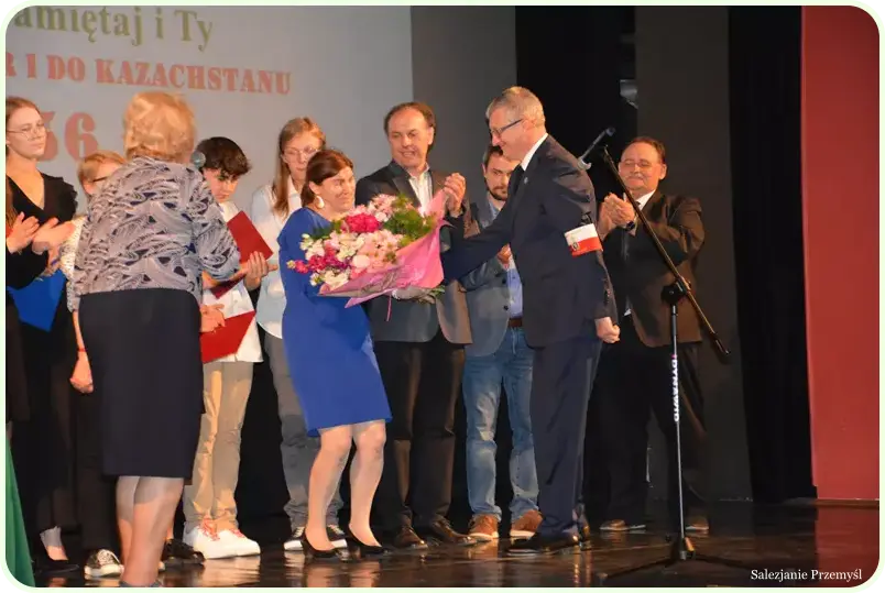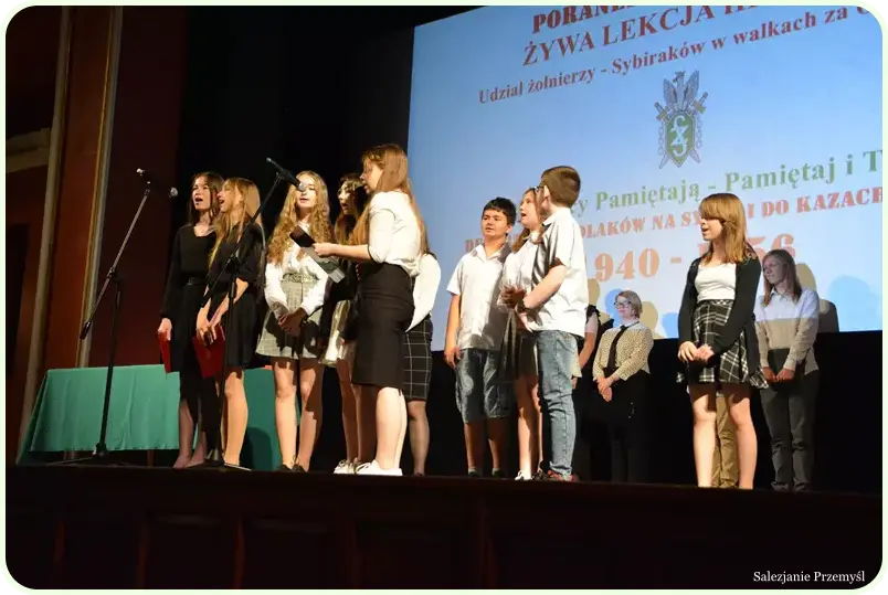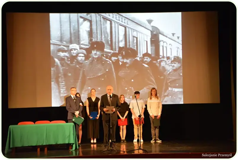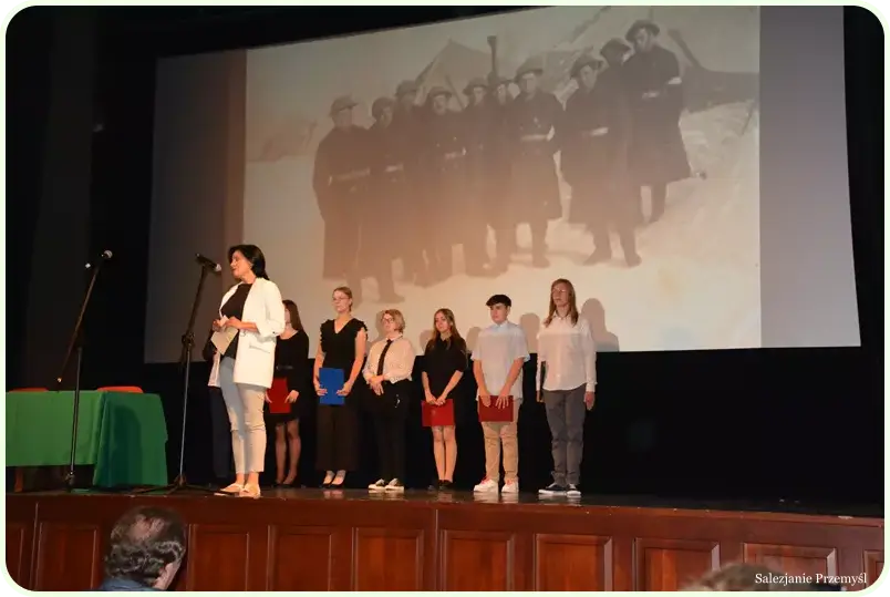 Przygotowana na to spotkanie – żywą lekcję historii – sala widowiskowa w Centrum Kulturalnym w Przemyślu zapełniła się 220 osobami – uczniami szkół przemyskich i powiatu przemyskiego. Na spotkanie przybyli: przedstawiciel Podkarpackiego Kuratora Oświaty Pan Augustyn Jędruchów, Pani Renata Kochanowicz-Chalicka Naczelnik Wydziału Edukacji i Sportu Urzędu Miejskiego w Przemyślu, Pani Anna Hayder Przewodnicząca Przemyskiej Rady Seniorów, ks. Mieczysław Faruń – Salezjanin i Pan Artur Mykita Dyrektor Szkoły Podstawowej Nr 15 w Przemyślu.