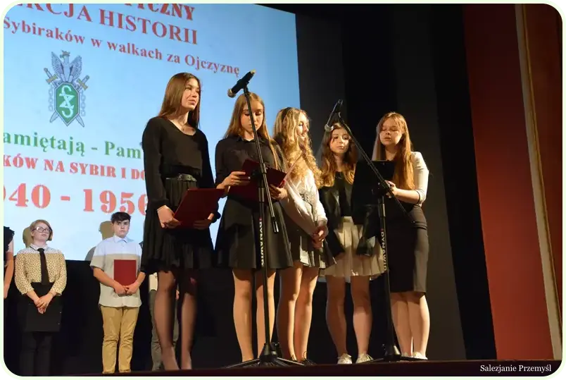 Podczas pierwszej części spotkania w montażu słowno-muzycznym historię zesłań przedstawili uczniowie ze Szkoły Podstawowej Nr 15 im. A. Mickiewicza pod opieką Pani Moniki Góruk, Pana Marcina Dumy i Pana Łukasza Cebeńko.