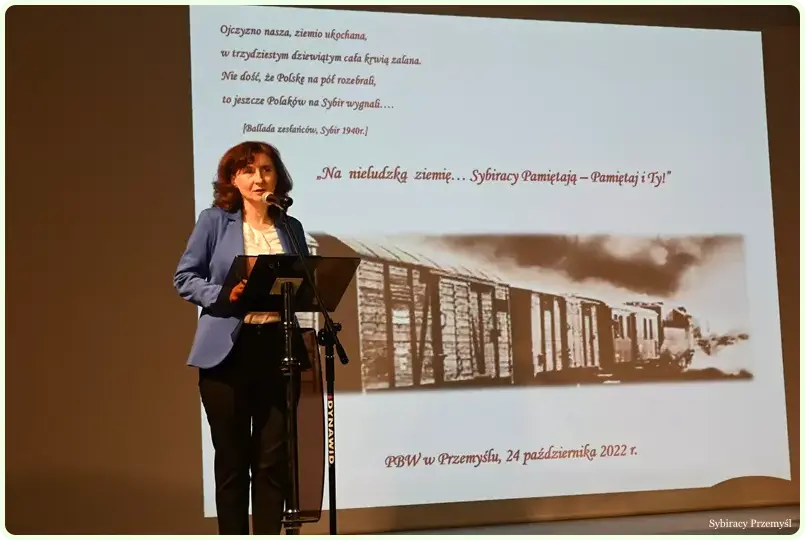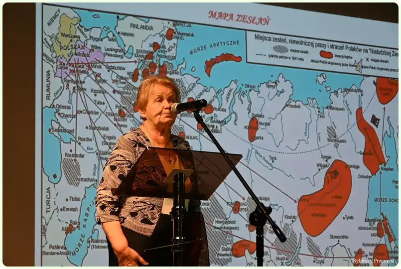 Obecni zapoznali się z filmem „Losy Zesłańców Sybiru”, po którym Pani Teresa Paryna – przemyska poetka zaprezentowała swoje wiersze o tematyce Kresowej i sybirackiej.