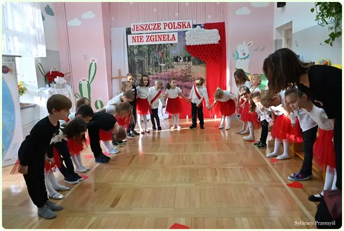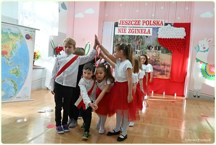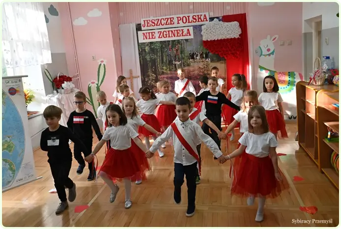 10 listopada 2022 r., w przeddzień 104. rocznicy Święta Niepodległości, członkowie Przemyskiego Związku Sybiraków – Panie: Joanna Preiss, Jadwiga Maszczak, Krystyna Hańczuk, Teresa Staś, Stanisława Zak oraz Pan Marian Boczar , na zaproszenie Dyrekcji, Grona Wychowawców i wychowanków Przedszkola Nr 3 w Przemyślu uczcili tę bardzo ważną dla Polaków Rocznicę. Dzieci rozpoczęły tę uroczystość od Poloneza, a następnie zaprezentowały w montażu słowno-muzycznym piękny program patriotyczny. Ważnym momentem tej uroczystości był fakt odśpiewania w ramach hasła „Razem dla Niepodległej” Hymnu Państwowego. Na zakończenie spotkania Sybiracy spotkali się indywidualnie z poszczególnymi grupami dzieci i przeprowadzili z nimi pogadanki o wydarzeniu, które dziś odbyło się w ich przedszkolu. Należy podkreślić bardzo wysoki poziom wiedzy historycznej jaki wykazały dzieci podczas rozmów o rocznicy uzyskania Niepodległości! Gratulacje dla Pań Wychowawczyń przygotowujących dzieci do tego występu!