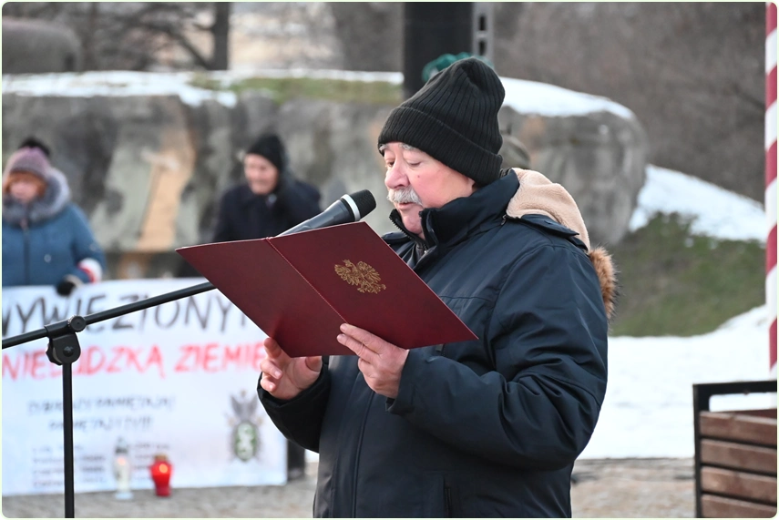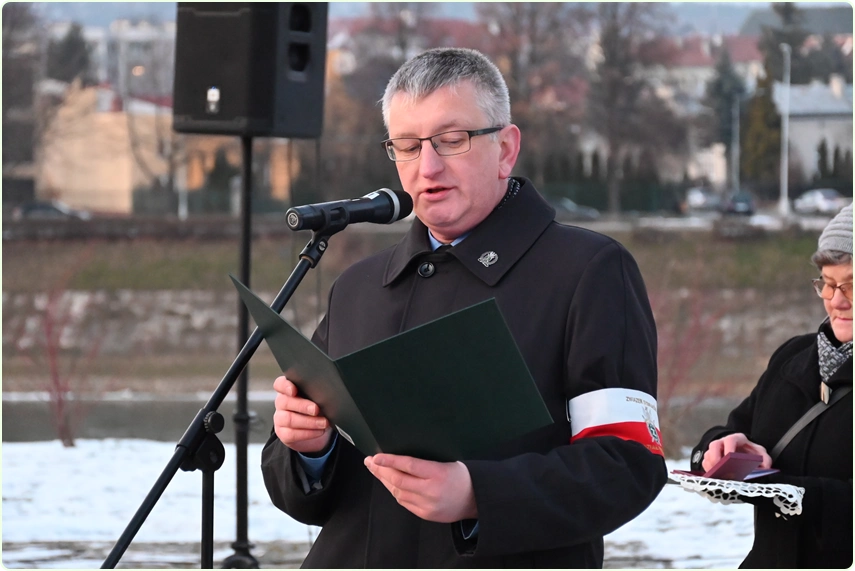 Prowadzący uroczystość przywitał przybyłych, został odegrany Hymn Sybiraków, a Pani Teresa Paryna przemyska poetka odczytała napisany na tę okoliczność wiersz pt.: „W rocznicę zsyłki Polaków na Sybir”.