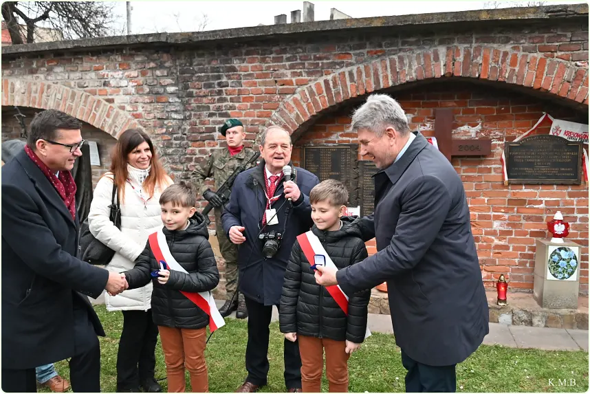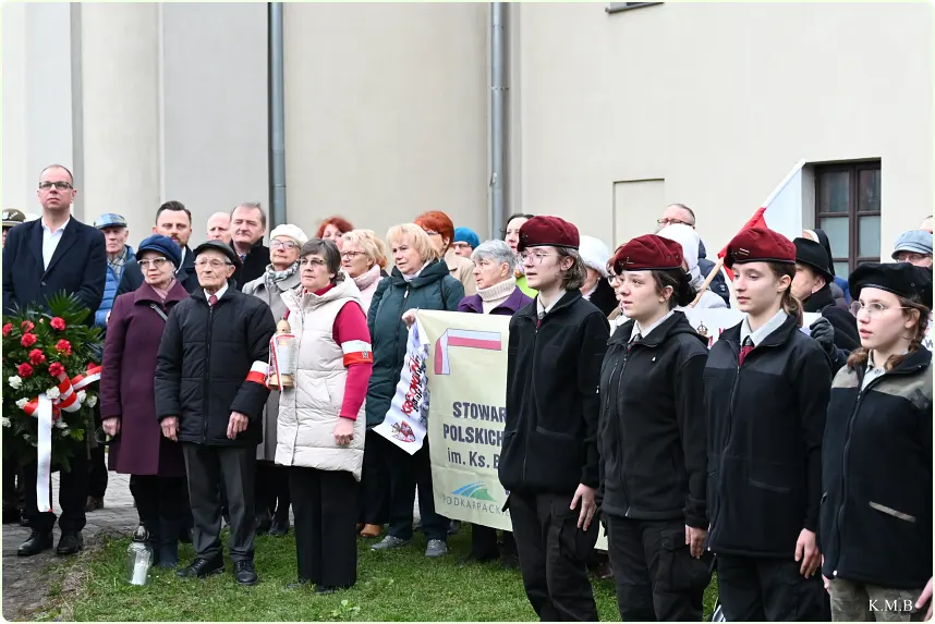 Po nabożeństwie druga część uroczystości odbyła się przy tablicach pamięci umieszczonych w arkadii kościoła. Podczas uroczystości dwóch młodych chłopców Jasiu i Filip otrzymali z rąk Dyrektora IPN Oddział w Rzeszowie dr Dariusza Iwaneczki i europosła Bogdana Rzońcy odznakę Młody Opiekun Miejsc Pamięci.