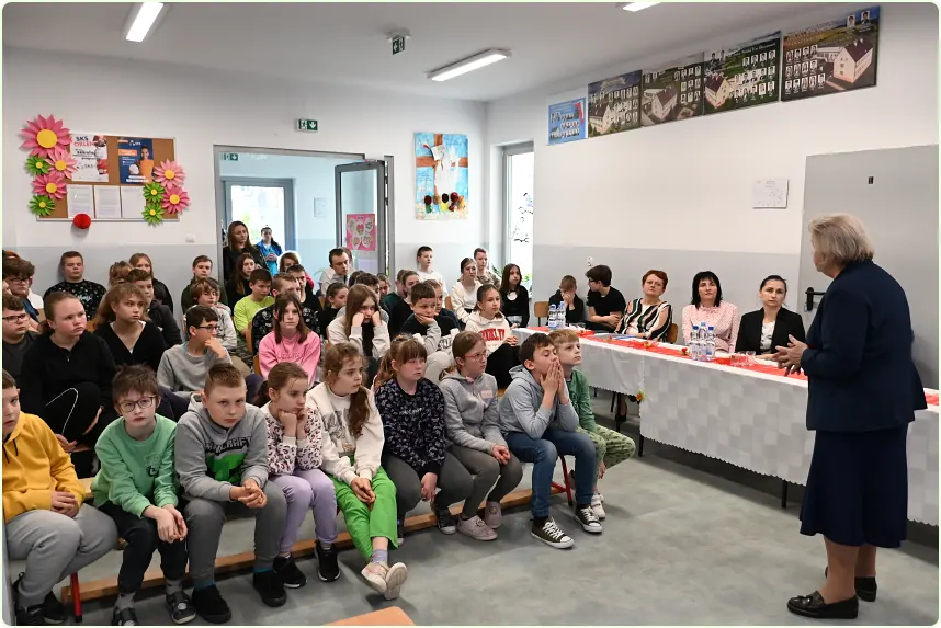 Na zaproszenie Dyrekcji, Grona Pedagogicznego i uczniów Szkoły Podstawowej im. Jana Pawła II w Olszanach przedstawiciele przemyskiego Oddziału Związku Sybiraków w Przemyślu w osobach: P. Stanisława Żak – prezes Zarządu Oddziału, P. Marian Boczar – wiceprezes i Pani Krystyna Hańczuk członek Zarządu w dniu 15 kwietnia 2024 r. uczestniczyli w „Żywej Lekcji Historii”. Obecnych przywitała Pani Barbara Nawojska-Synus – Dyrektor Szkoły.