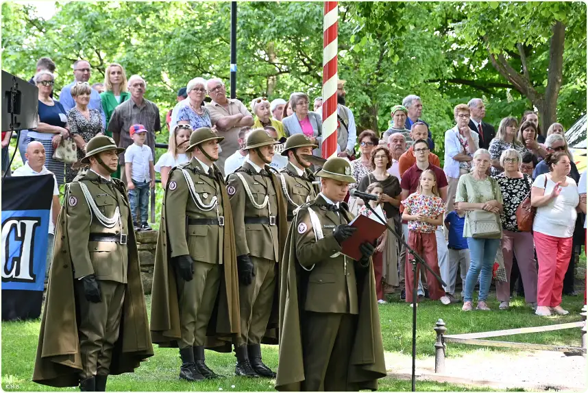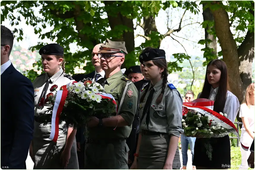 Po eucharystii nastąpił uroczysty przemarsz na Wzgórze Zamkowe, gdzie przy kamieniu upamiętniającym Konstytucję 3 maja odbyła się druga część uroczystości.