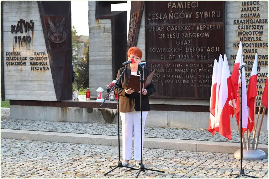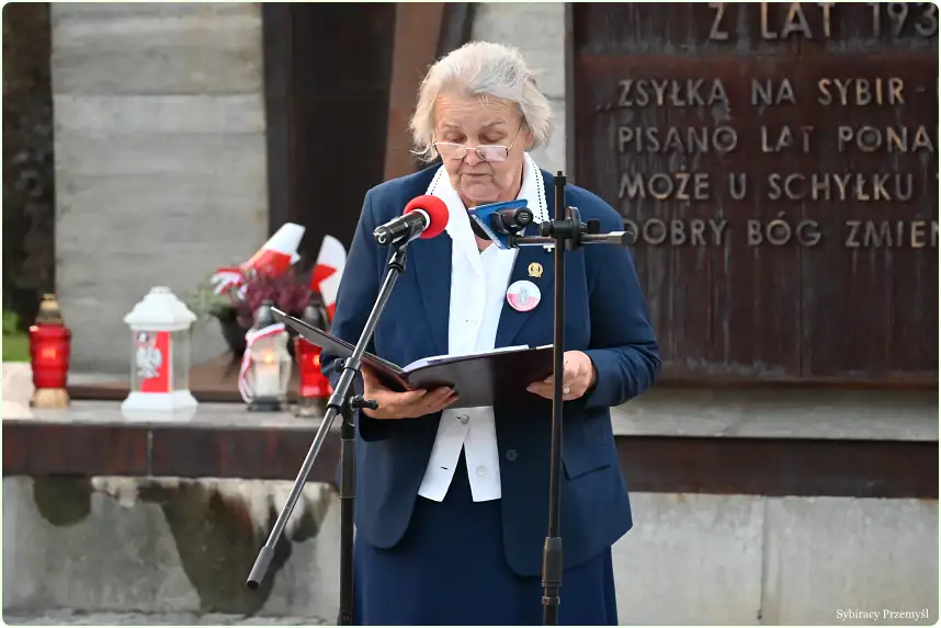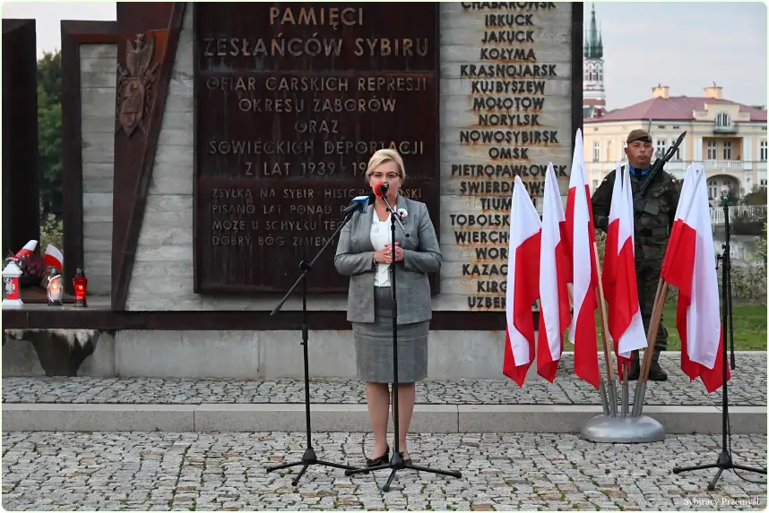 Głos zabrała prezes przemyskiego Oddziału Związku Sybiraków Stanisława Żak, która przypomniała historię powołania w 1928 r. Związku Sybiraków założonego przez Zesłańców wieku XIX i początku XX. Związek działał do wybuchu II wojny światowej. Okres II wojny św. to przerwa w działalności Związku. System polityczny PRL nie pozwalał mówić głośno o zesłaniach. Wokół aresztowań, wywózek i Ofiar zapadło długoletnie milczenie. Pod koniec lat 80-tych, gdy system komunistyczny zaczął się chwiać zaczęto wspominać o tym, że być może jeszcze żyją ludzie, którzy przeszli przez piekło więzień, łagrów i zesłań. Sybiracy nieśmiało zaczęli się ujawniać. W 1988 r. po prawie półwiecznej niebytności Związek został zarejestrowany jako Związek ogólnopolski. W 1989 r. powołano do życia Oddziały w tym w 2004 r. Oddział przemyski. Na początku istnienia Oddziału gromadził on 558 osób a na dzień 17 września 2024 r.  Oddział liczy … (Zesłańcy i potomkowie).