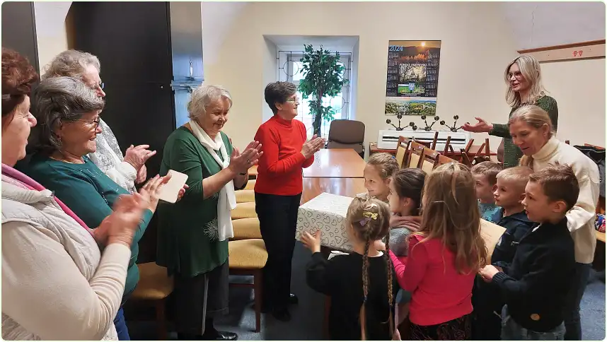 Reprezentacja z Przedszkola nr 14 u Sybiraków W ramach obchodów Ogólnopolskiego Dnia Seniora w dniu 21.11.2024 r. reprezentacja z Przedszkola Nr 14 im. Czytelników Życia Przemyskiego przybyła do siedziby przemyskiego Oddziału Związku Sybiraków z prezentem oraz życzeniami. Post Views: 262 21 listopada 20242 WYDARZENIA Nawigacja wpisu Poprzedni Poprzedni wpis: Narodowe Święto NiepodległościNastępny Następny wpis: Święto 5. Batalionu Strzelców Podhalańskich Podobne wpisy Poranek patriotyczny – lekcja historii z udziałem uczniów szkół podstawowych i ponadpodstawowych 24 września 2025 W Dębicy odsłonięto ławeczkę – pomnik Matki Sybiraczki 20 września 2025 86. rocznica agresji sowieckiej i Dzień Sybiraka w Przemyślu 17 września 2025 Spotkanie autorskie z prof. Stanisławem Sławomirem Nicieją 15 września 2025 Odsłonięcie tablicy pamięci bł. kard. Stefana Wyszyńskiego 12 września 2025 86. rocznica wybuchu II wojny św. – uroczystości w Przemyślu 1 września 2025