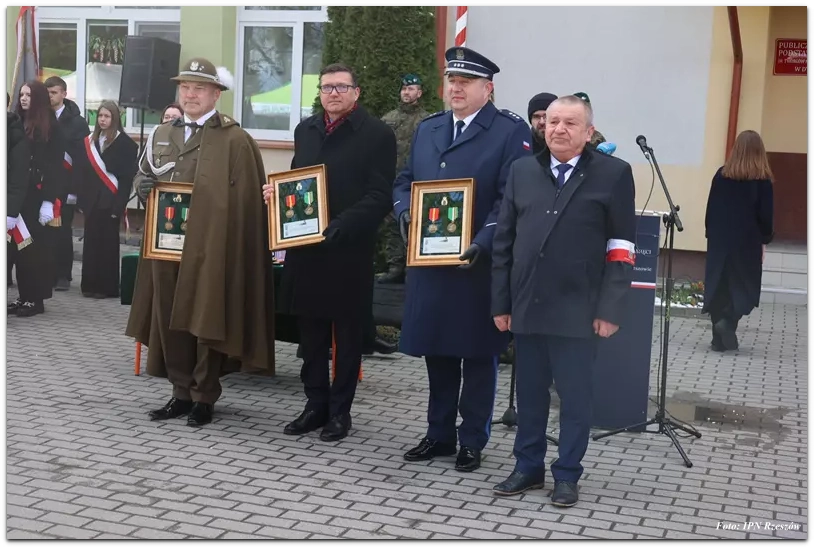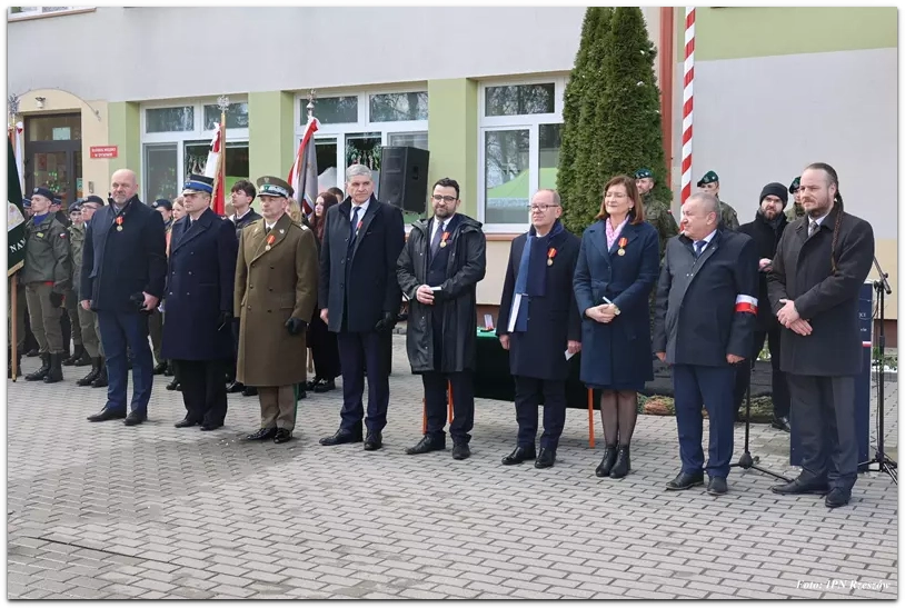 Część patriotyczna rozpoczęła się od złożenia meldunku, podniesienia Flagi Państwowej i odegraniem Hymnu Państwowego. Nastąpiło odsłonięcie i poświęcenie tablicy pamiątkowej. Tablica została sfinansowana ze środków Instytutu Pamięci Narodowej w Rzeszowie.