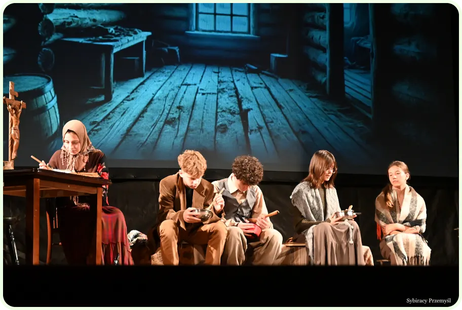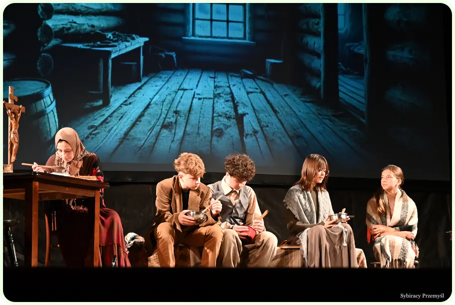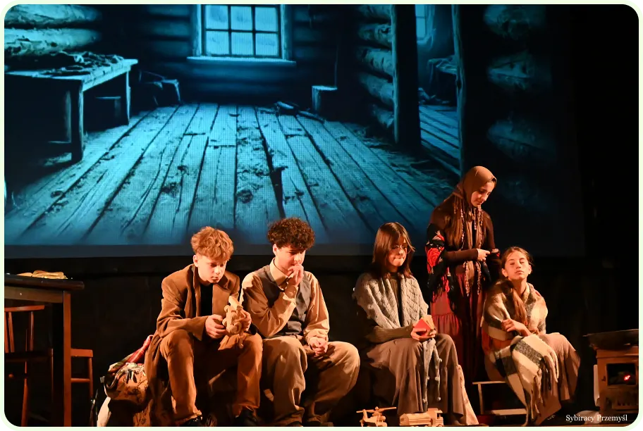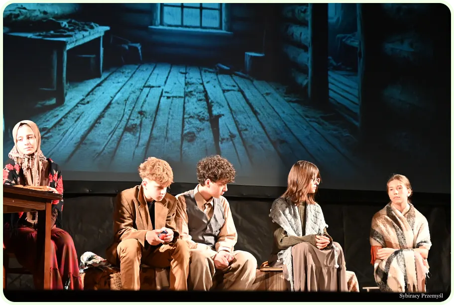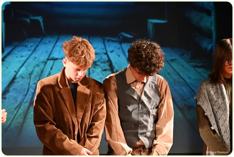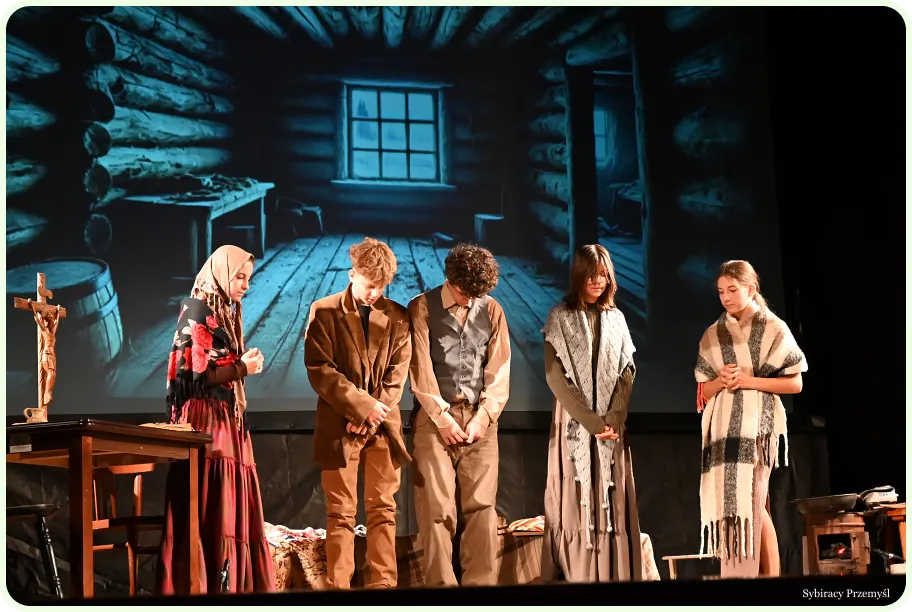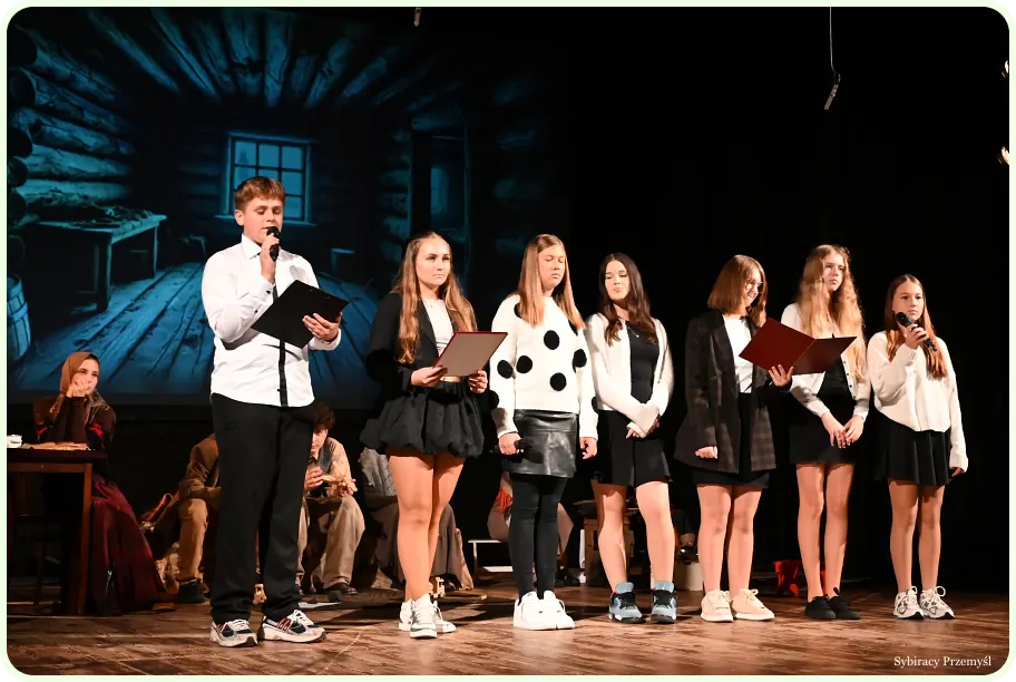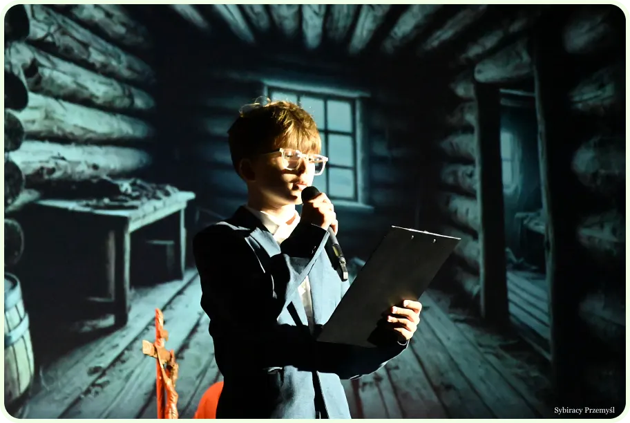 Podczas pierwszej części spotkania w montażu słowno-muzycznym historię zesłań i tułaczego losy Sybiraków przedstawili uczniowie ze Szkoły Podstawowej Nr 15 im. A. Mickiewicza pod opieką Pani Moniki Góruk, Pana Marcina Dumy i Pana Łukasza Cebeńko.