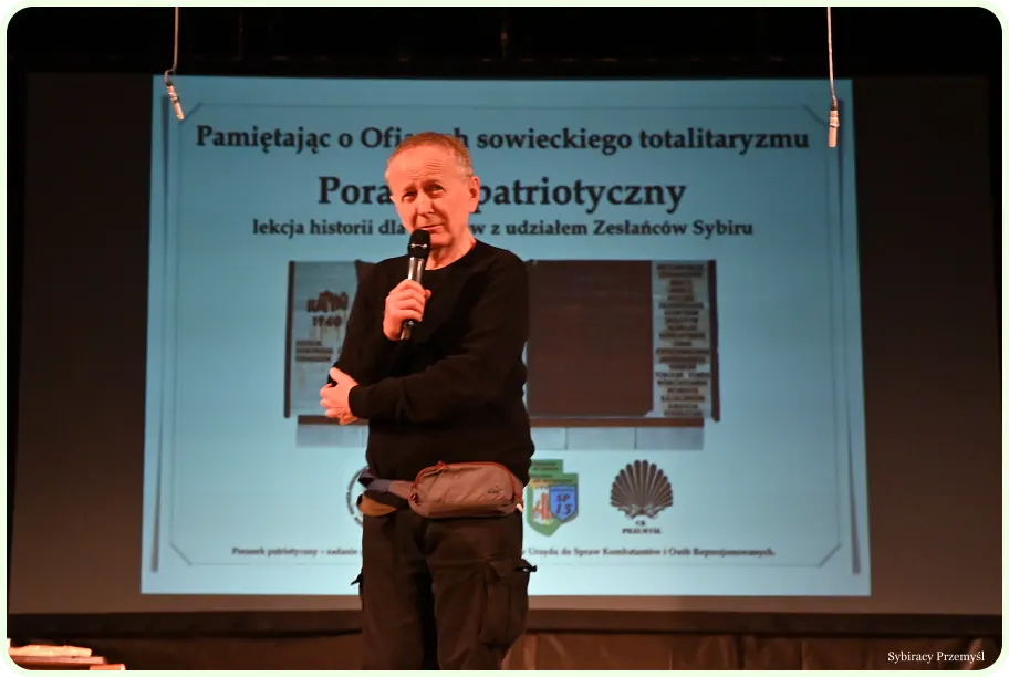 Spotkanie poprowadził Marian Boczar wiceprezes przemyskiego Oddziału Związku Sybiraków, który na wstępie przedstawił skutki podpisanego 23 sierpnia 1939 r. tajnego paktu Ribbentrop – Mołotow i uchwały z 5 grudnia 1939 r. Rady Komisarzy Ludowych Związku Sowieckiego o deportowaniu ludności polskiej ze wschodnich obszarów II RP oraz historię powstania i działalności Związku Sybiraków.