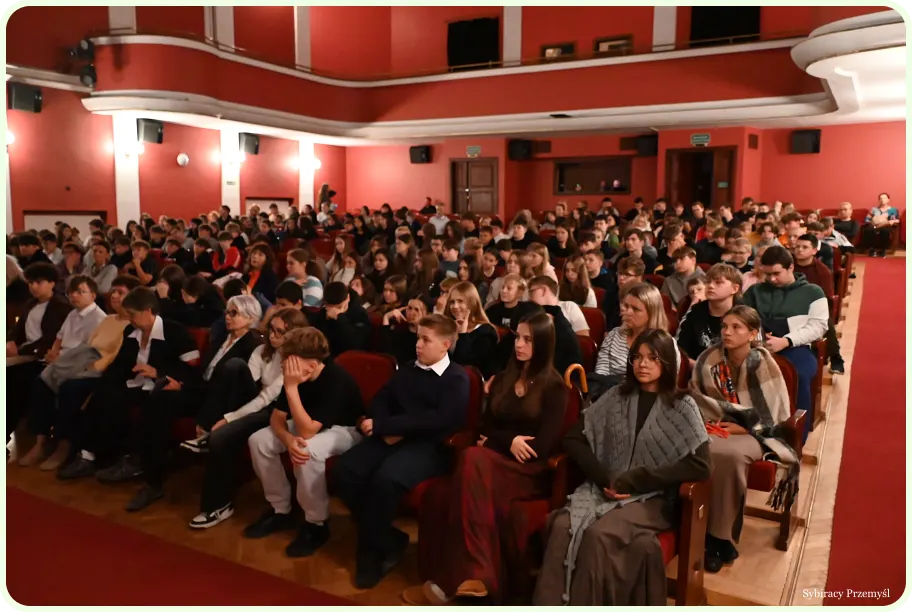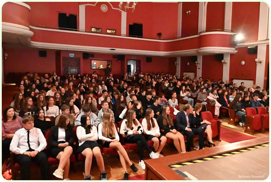 Przygotowana na to spotkanie – żywą lekcję historii – sala widowiskowa w Centrum Kulturalnym w Przemyślu zapełniła się około 240 osobami.