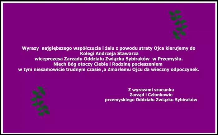 Członkowie Związku Sybiraków w Przemyślu i Zarząd Oddziału Związku z głębokim żalem żegnają nieodżałowanej pamięci Koleżankę Obrzęd pogrzebowy odbędzie się w dniu 25 maja 2021…