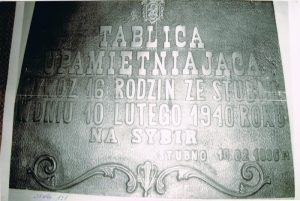 Tablica pamiątkowa poświęcona w dniu 10 lutego 2000 r. w 60. Rocznicę pierwszej masowej deportacji Polaków na Sybir. Umieszczona w arkadii muru ogrodzenia kościoła pw.…