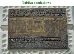 Tablica pamiątkowa została poświęcona w dniu 10 lutego 1995 r. Umieszczona na fasadzie budynku Dworca PKP w Przemyślu. Przedstawia Herb miasta Przemyśla u góry, wagon…