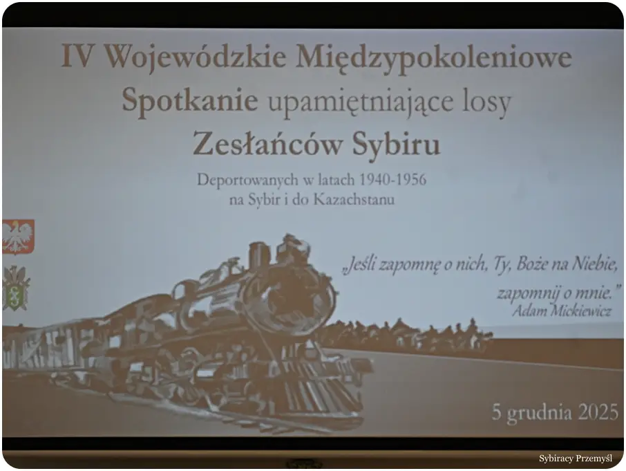 5 grudnia br. w Rzeszowie odbyło się IV Międzypokoleniowe spotkanie upamiętniające losy Zesłańców Sybiru deportowanych w latach 1940 – 1956 na Sybir i do Kazachstanu, w którym uczestniczyli przedstawiciele Prezydenta Miasta Przemyśla z Wydziału Promocji i Kultury Urzędu Miejskiego, Wicestarosta Przemyski, członkowie przemyskiego Oddziału Związku Sybiraków i Stowarzyszenia Rekonstrukcji Strojów Historycznych w Przemyślu. Organizatorami spotkania – lekcji historii byli: Wojewoda Podkarpacki Teresa Kubas-Hul i Prezes Oddziału Związku Sybiraków Oddział w Rzeszowie Józef Sieńko.