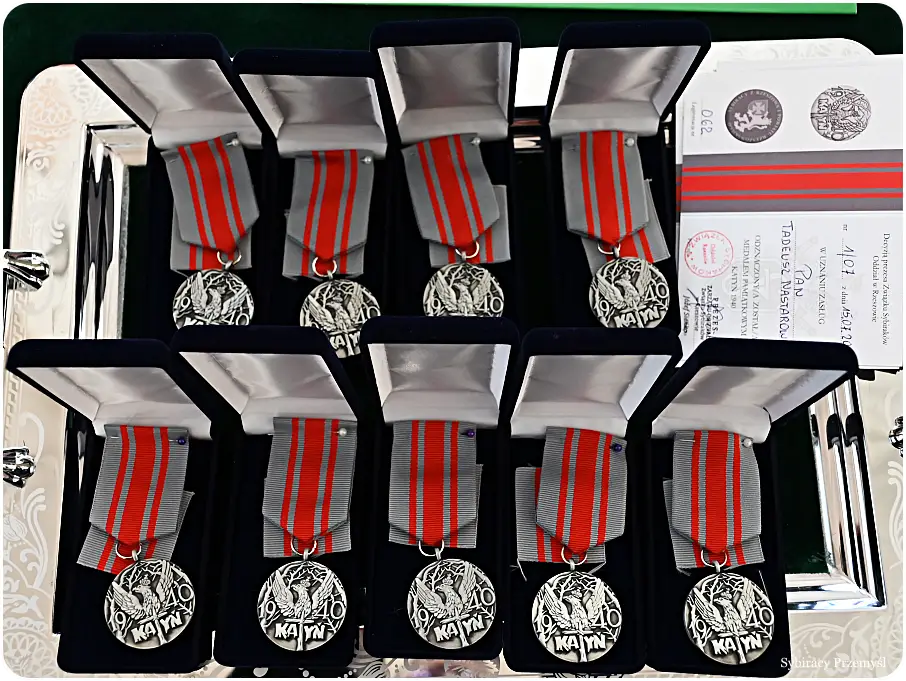 Kolejnym punktem spotkania było wręczenie odznaczeń. Medalem „Katyń 1940” wyróżnienie zostali: generał brygady Tadeusz Nastarowicz, dowódca XXI Brygady Strzelców Podhalańskich, nadinspektor Andrzej Patrzałek, komendant Wojewódzki Policji w Rzeszowie, doktor nauk o zdrowiu Ewa Zawilińska, dyrektor Regionalnego Centrum Krwiodawstwa i Krwiolecznictwa w Rzeszowie, Hubert Bury, naczelnik Oddziałowego Biuro Upamiętniania Walk i Męczeństwa w Oddziału w Rzeszowie, Kamila Filipczak-Stasicka z biura Wojewody Podkarpackiego Urzędu Wojewódzkiego. Pan Paweł Krajmas, prezes Stowarzyszenia Polska Ekologia, Sabina Siekaniec z biuro Wojewody Podkarpackiego Urzędu Wojewódzkiego, ksiądz prałat Władysław Jagustyn, kapelan rzeszowskiego Oddziału Związku Sybiraków, Izabela Kardasińska ze Stowarzyszenia Rekonstrukcji Strojów Historycznych w Przemyślu oraz