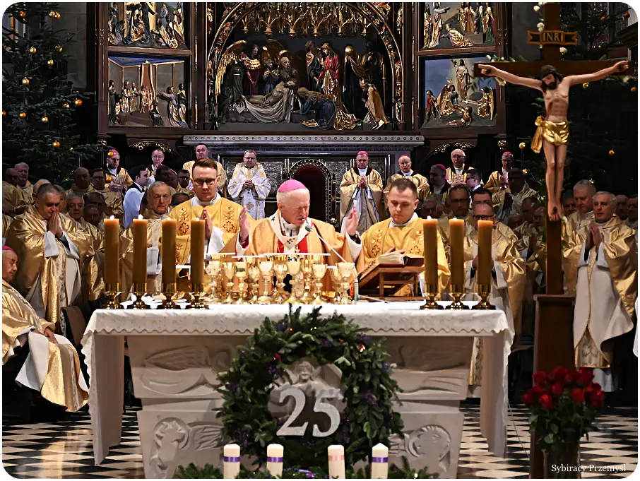 W sobotę, 20 grudnia 2025 r., podczas uroczystej Eucharystii sprawowanej w Bazylice Archikatedralnej w Przemyślu wierni, członkowie Związku Sybiraków Oddział w Przemyślu i duchowieństwo archidiecezji przemyskiej dziękowali za 25 lat posługi biskupiej abp. Adama Szala, metropolity przemyskiego.